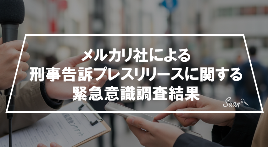 このリリースに対して、スタートアップメディア「SUAN」(以下、当メディア)が「メルカリ社による刑事告訴に関するアンケート」を実施したところ、メルカリ社代理人を名乗る弁護士より「刑事告訴はメルカリ社ではなく、メルカリ社員が行ったものであり、当該記載を継続するようであれば法的措置をする」旨が代理人より告げられたのである。