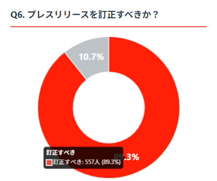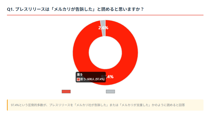 89.3%がメルカリ社による刑事告訴プレスリリースの訂正を推奨。企業広報の責任者も「上場企業とは思えない幼稚さ」と回答。